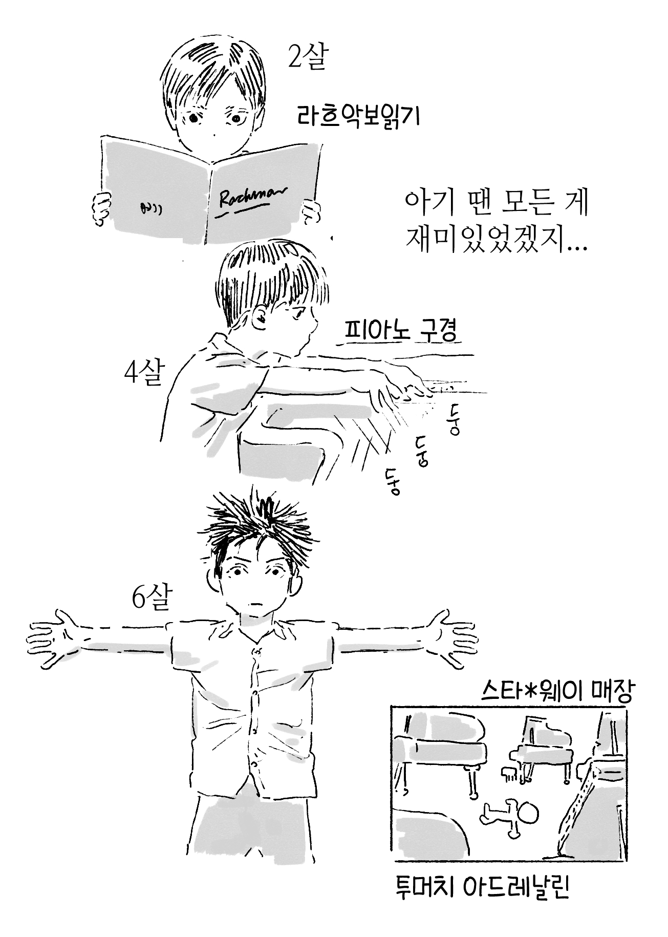 함께 피아노를 연주하는 소년 김희재와 유령 가람이를 10월마다 생각하고 있습니다 ...